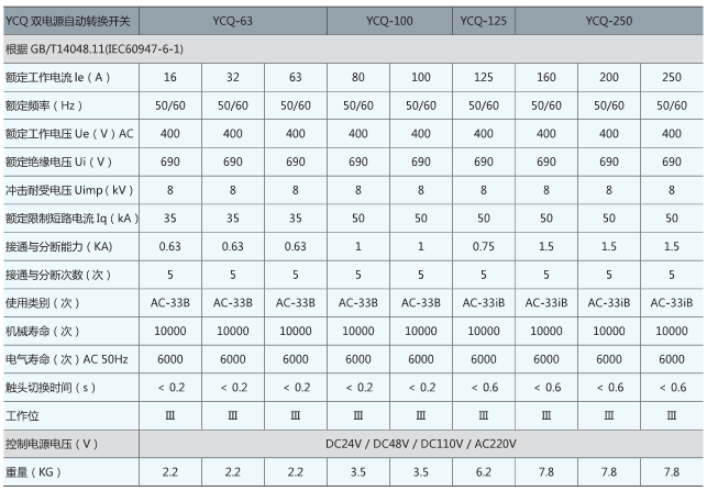 YCQ系列雙電源自動轉換開關適用于額定絕緣電壓690V、額定功率50HZ、額定工作電壓400V及以下、額定電流10A~3200A的配電系統中。主要用于供電系統在應急情況下的雙路電源轉換,最小轉換動作時間小于0.2S,以確保主要負荷(應急照明、應急樓梯、消防系統等)連續可靠工作。廣泛應用于高層樓宇、郵電通訊、工礦企業、船舶運輸、電力站、醫院、銀行等需要提供不間斷供電的重要場所。