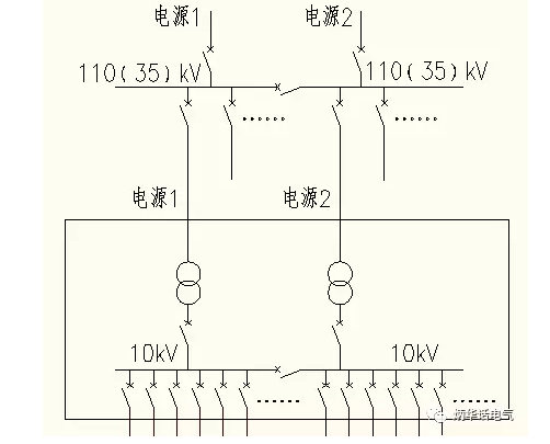 c)電源2正常情況下不工作,但處于冷備用狀況,全部負(fù)荷也由電源1負(fù)荷。