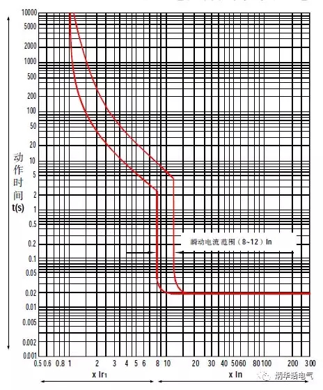 如圖1所示為典型的兩段式保護特性曲線。左側曲線為反時限的過載保護特性曲線;右側為直線,表示定時間的瞬時動作曲線,動作時間為0.02s。而圖2為某斷路器三段式保護特性曲線。